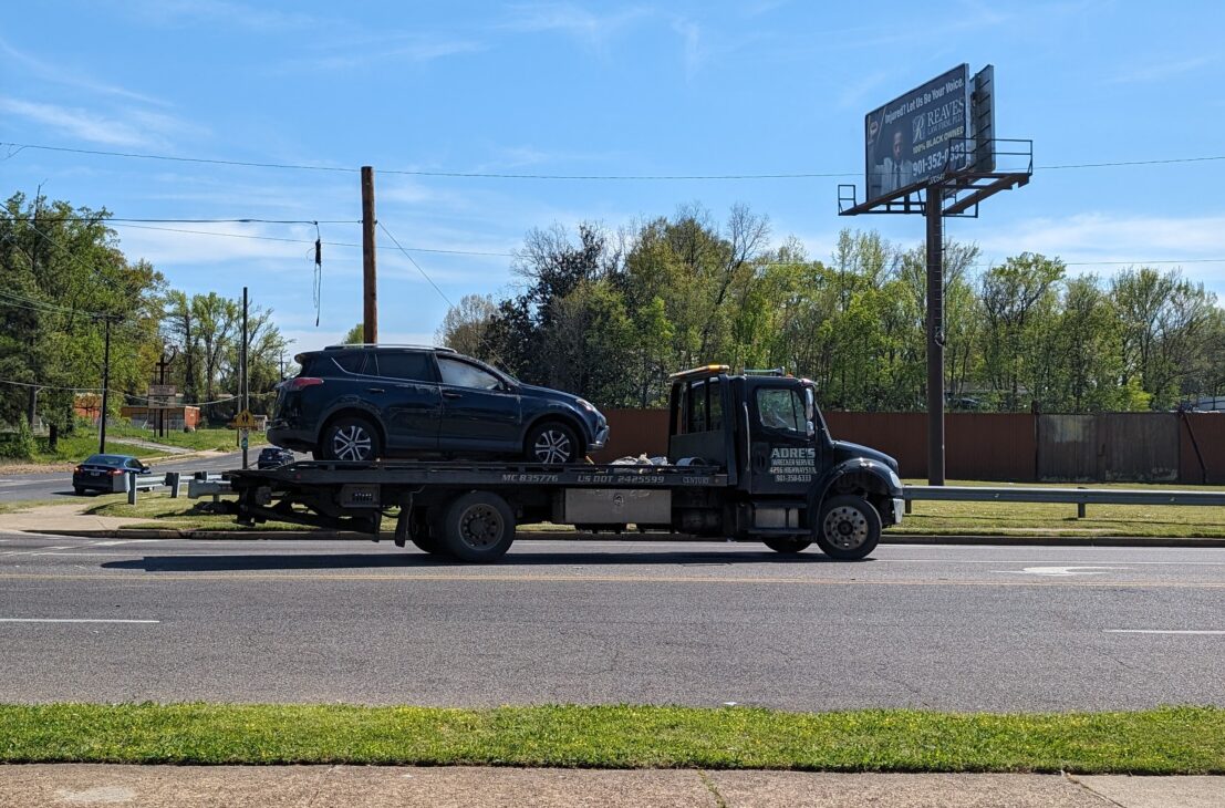 I had a blanket in my car, which I used to wrap around all the other items to be carried at once. A knapsack of sorts. My church sandals, Iron Flask water bottle, sunglasses, Costco Card, and several other little trinkets all bundled up into the blanket to create a mound of valuables. Once we got all my items from the car, the mechanics loaded my car onto the bed of the tow truck and drove off.